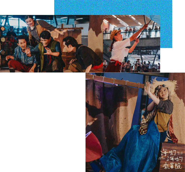 影響‧新劇場以兒童為主體,努力為台灣孩子量身創作戲劇,在觀戲過程中,傳遞訊息、啟發豐富孩子心靈。台灣與海洋有深切的連結,從《白鯨記》透過海洋傳說和海廢議題創造出屬於台灣兒童的海洋傳說。《海喲海喲來冒險》邀演緣起於國立臺灣歷史博物館為紀念台南 400 的「1624特展」。面對這樣的命題,要對年紀較小的兒童觀眾,是要細說大航海時代的殖民歷史,還是引發他們對於海洋冒險的想像、體會跟反思呢?我們決定帶著孩子由認識世界起源開始,循著文化和歷史的線索,用 Play 重返沒有現代科技的時代。感受人類因著好奇和求知慾得以不斷創造前進,經歷體驗未知世界的時代。在演出中加入互動扮演,希望與親子觀眾共同創造奇妙的旅程風景。